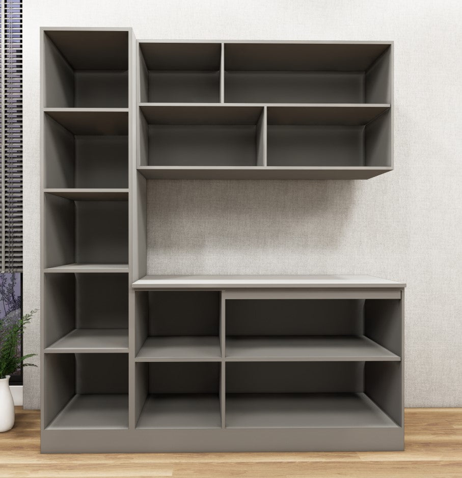 Modern Dust Finish Crockery Unit – Multi-Section Modular Design