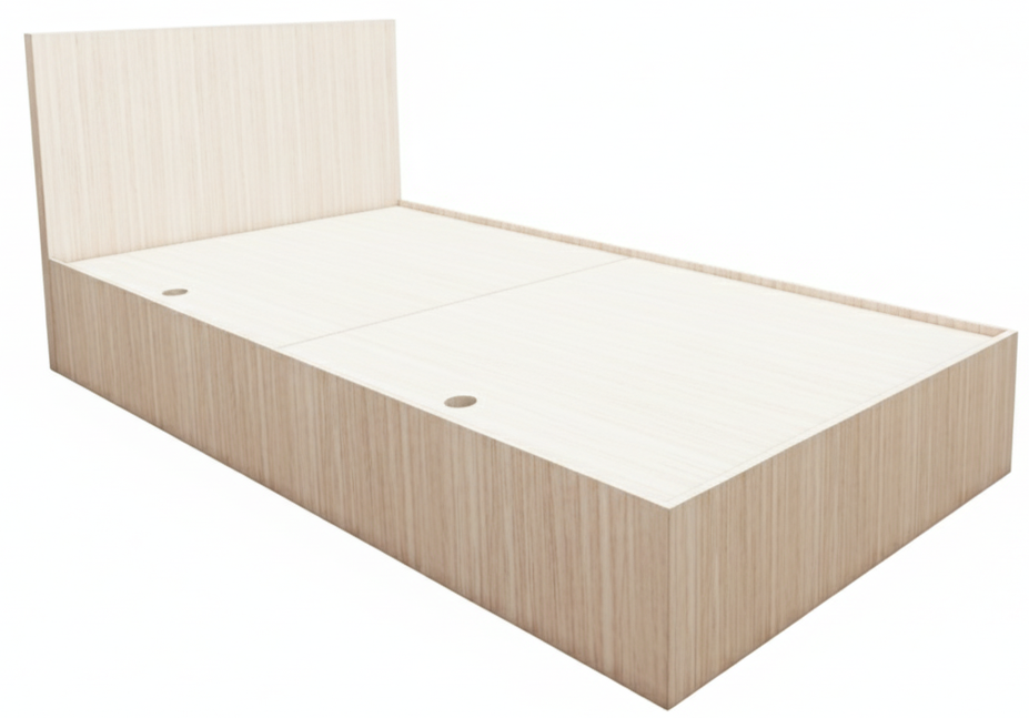 Modern Oak Finish Single Bed with Storage – Compact Wooden Bedframe
