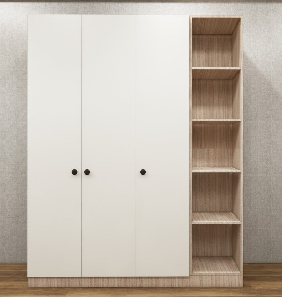 Modern Oak & Wool White Finish - Stylish 4 Door Unit with Side Open Shelves