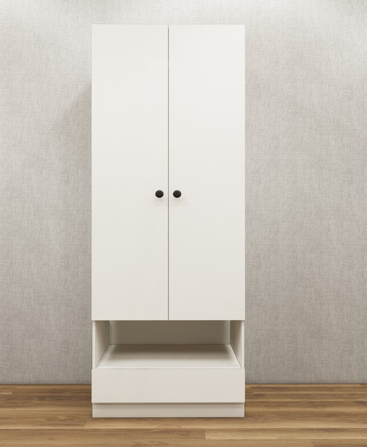 Wool White Finish Sleek Two Door Design with Open Shelf & Drawer