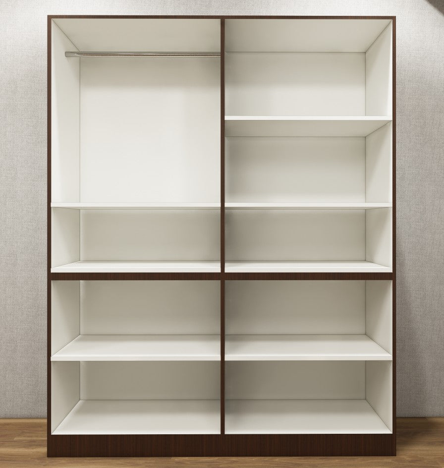 Modern Rich Walnut & Wool White Finish Four Door Wardrobe – Ample Shelving & Hanging Space